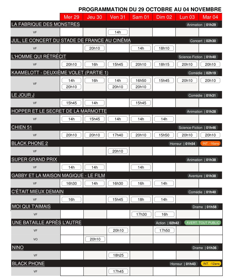 Cinéma Le Dunois - Programme des séances du 29 octobre au 4 novembre.