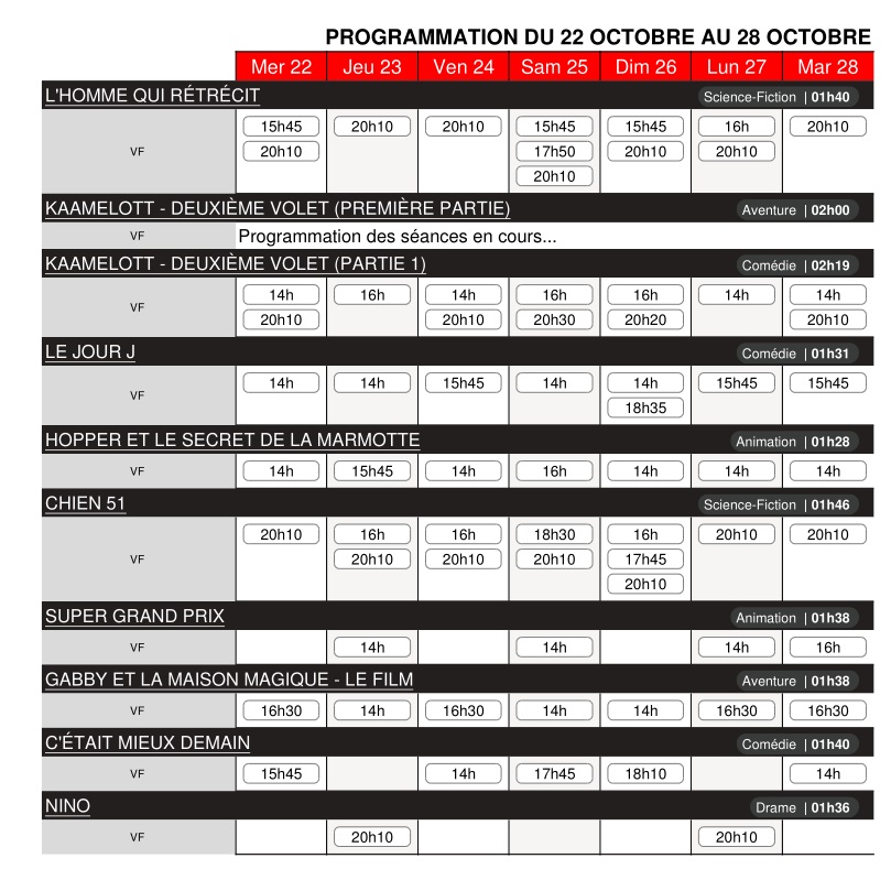 Cinéma Le Dunois - Programme des séances du 22 au 28 octobre.