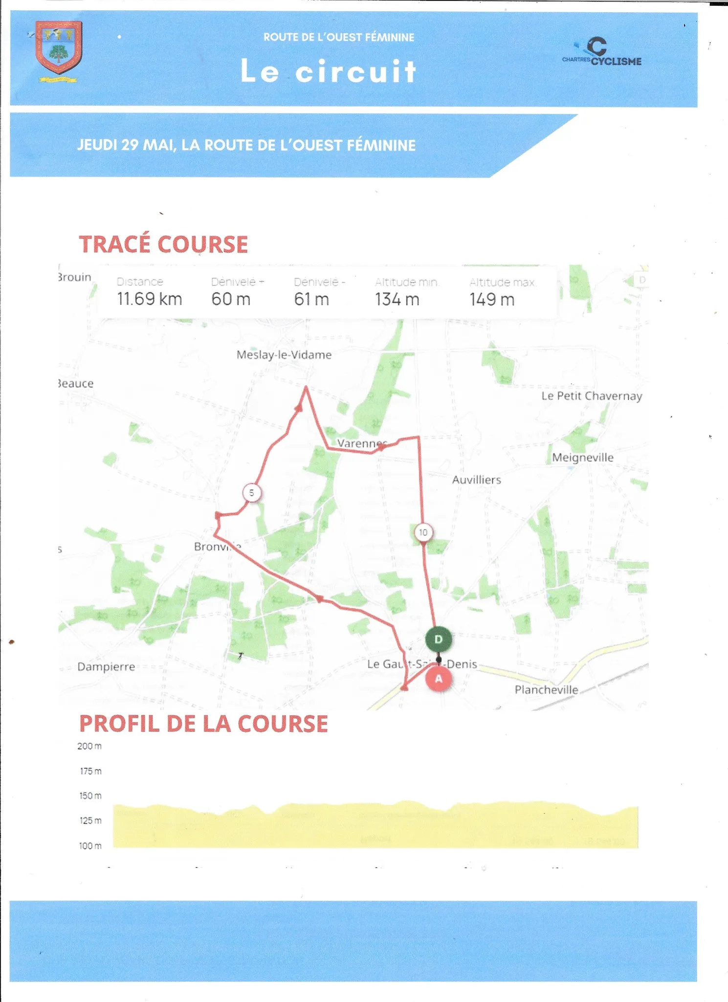 Du cyclisme au Gault-Saint-Denis avec la finale de la Route de l'Ouest Féminine. Cet après-midi, la 5e et dernière manche se disputera sur un circuit de 11,7 km. (voir circuit ci-dessous).
