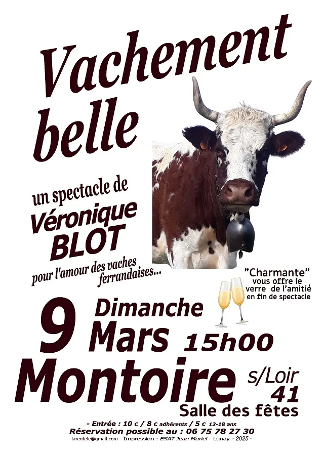 Dimanche 9 mars à 15h00 à la salle des fêtes de Montoire-sur-le-Loir (Loir-et-Cher) : Vachement belle. De et par Véronique Blot.